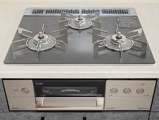 STAGE2- キッチンには、見た目が美しいだけでなく、掃除も容易なガラストップのガスコンロを採用しています。