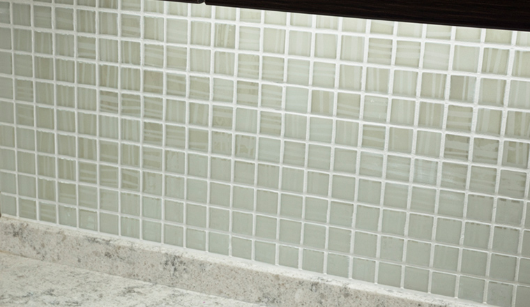- 三面鏡下の壁面には華やかさと上質さを演出するモザイクタイル貼りとしています。