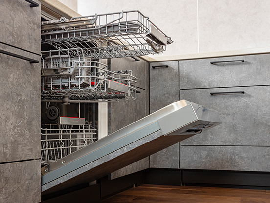 STAGE3- ドイツ発祥の上質なビルトイン家電ブランド「Bosch」の大型フロントフルオープンタイプを装備。腰を深くかがめることなく、楽な姿勢で食器を出し入れできる仕様です。