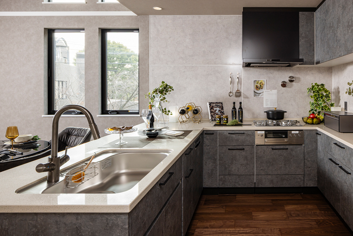 ご夫婦やお子様と一緒に家事シェア可能な大きなキッチン。