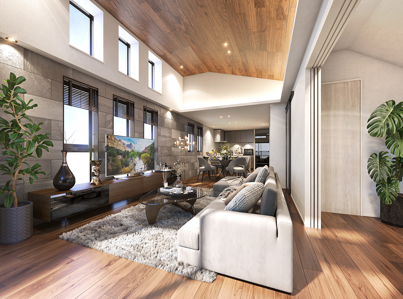 - 大開口サッシを採用した明るく開放感のある約21畳超のLDK。