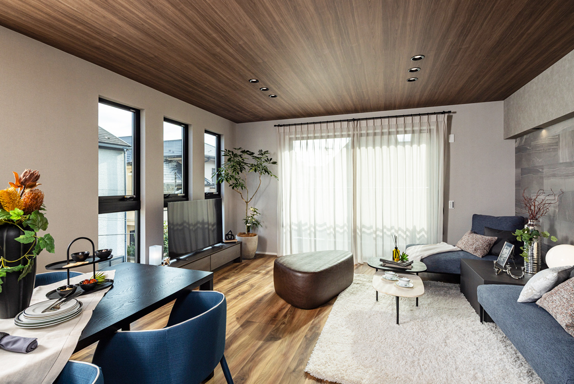 約20畳のLDKのLD部分には、大開口サッシを採用。明るく開放感のある空間に。