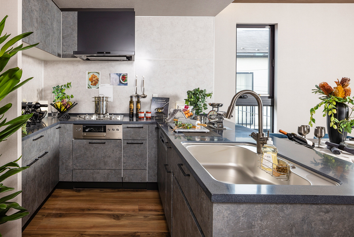 ご夫婦やお子様と一緒に家事シェア可能な大きなキッチン。