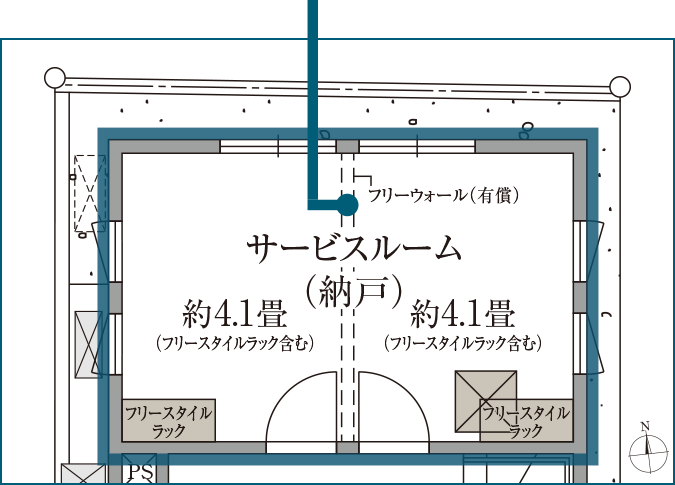 フリーウォール設置箇所イメージ(サービスルーム(納戸)/STAGE2)