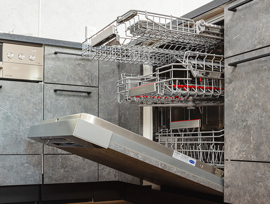 STAGE2- ドイツ発祥の上質なビルトイン家電ブランド「Bosch」の大型フロントフルオープンタイプを装備。腰を深くかがめることなく、楽な姿勢で食器を出し入れできる仕様です。