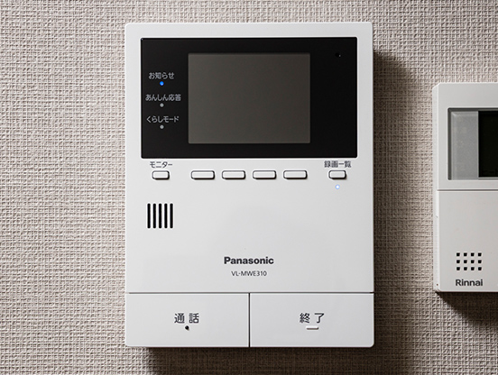 STAGE2- LDに設置されたエントランスモニターは自動録画機能はもちろん、玄関ドアの施解錠機能付き。家族の帰宅時などでもLDにいながら鍵の開け閉めが可能です。