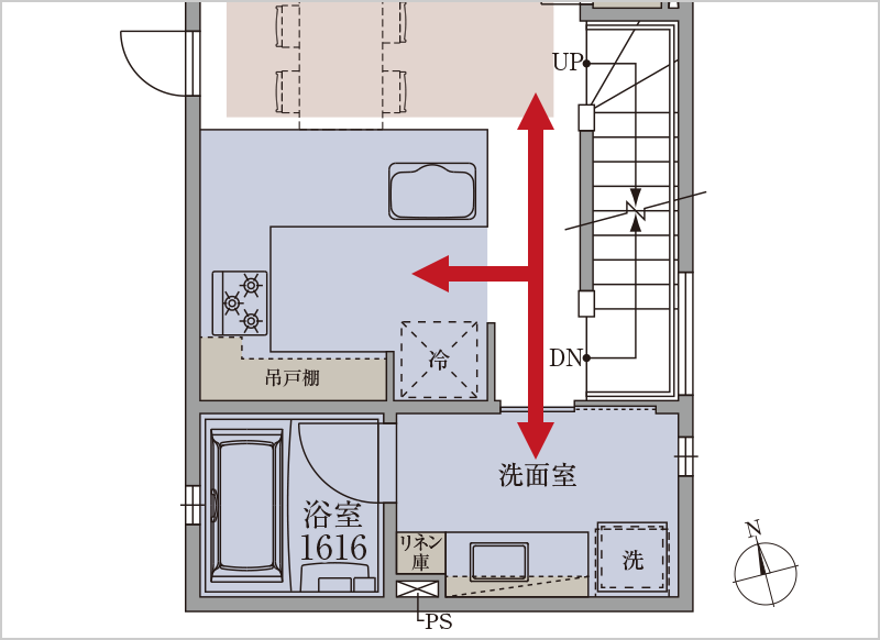 - LDKと水回りを同フロアに配置した家事楽・時短動線をご用意。