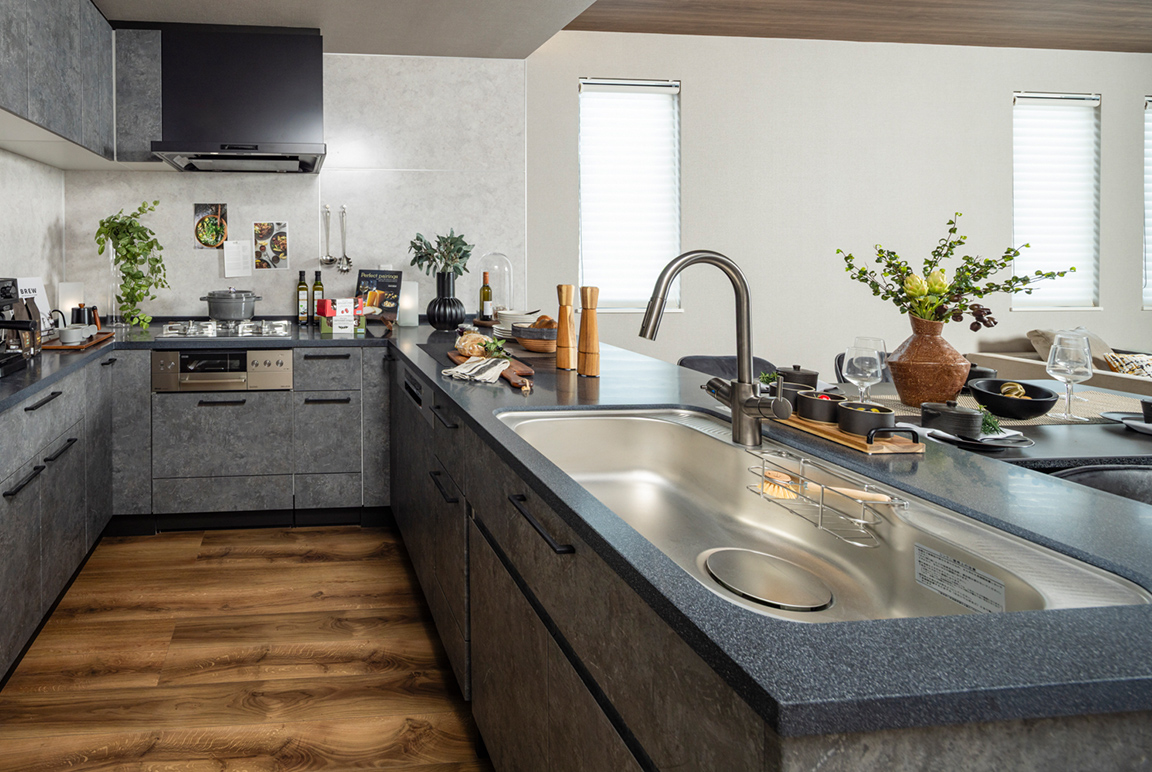 ご夫婦やお子様と一緒に家事シェア可能な大きなキッチン。