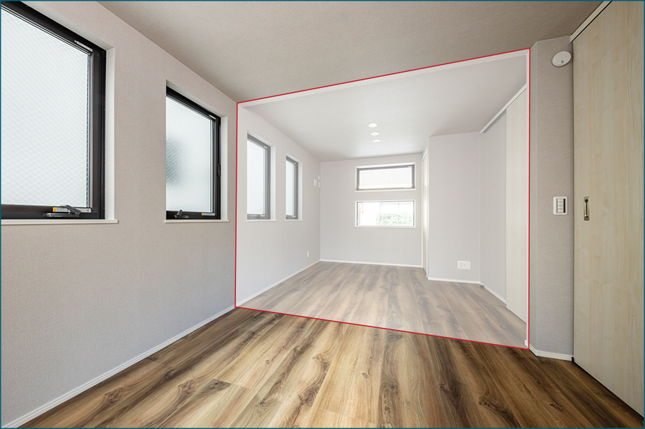 家族の変化に対応する可変性のある空間。 家族が増え、お子様の成長とともに自室が必要となった場合には、フリーウォールの設置で2つに分けることが可能な2in1ルーム。