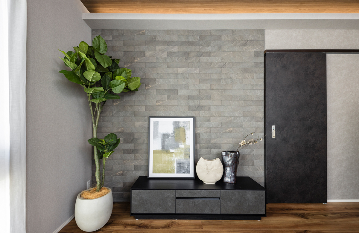 タイル調の壁材が醸し出す、スタイリッシュな空間。