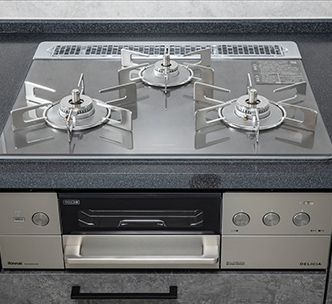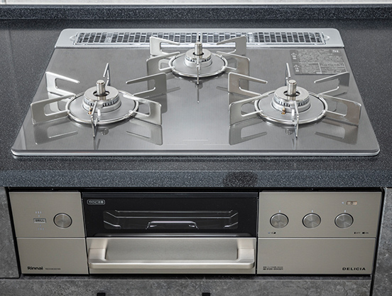STAGE2- キッチンには、見た目が美しいだけでなく、掃除も容易なガラストップのガスコンロを採用しています。