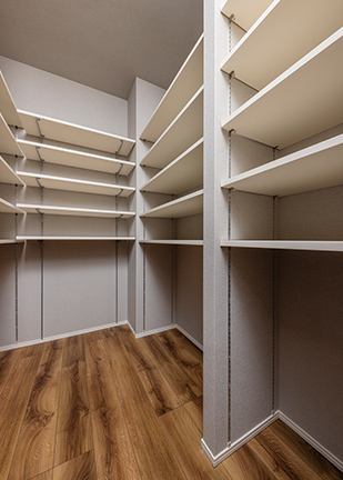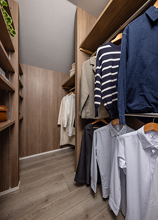 ゆとりあるウォークインクローゼットには、ご夫婦の衣類以外にもシーズンオフの寝具なども収納可能。