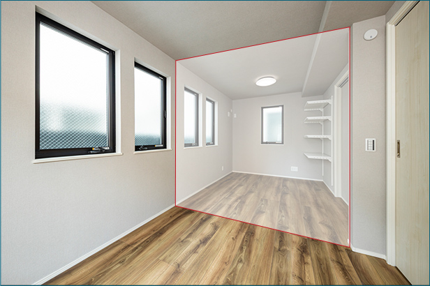 家族の変化に対応する可変性のある空間。 家族が増え、お子様の成長とともに自室が必要となった場合には、フリーウォールの設置で2つに分けることが可能な2in1ルーム。